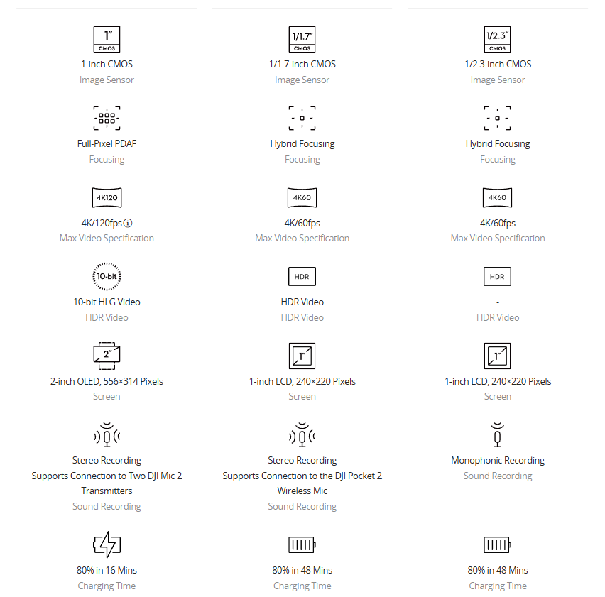 Osmo Pocket Series Product Comparison